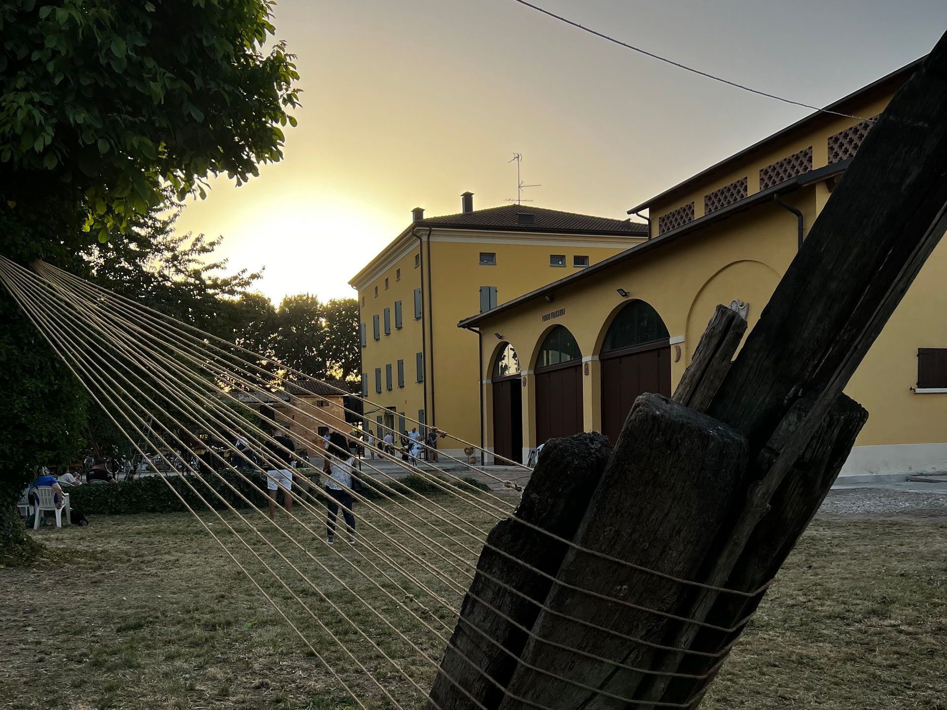 Ramificazioni 2023, terza edizione di Agri Land Art all’interno del XV AiaFolkFestival, ritorna alla Corte Frassona con un numero di presenze espositive che quasi raddoppia quella dello scorso anno. La grande abitazione che la famiglia Moretti-Magnani mette a disposizione del Coro Mondine di Novi durante il Festival è caratterizzata da uno splendido fienile, alcuni rustici i cosiddetti bassi servizi, un oratorio ed una grande aia. Tutti questi sono gli edifici che definiscono gli spazi della Corte, luogo caro a tutta la Comunità novese.